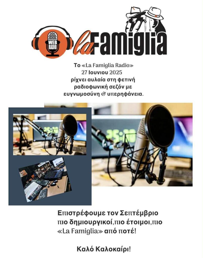 «La Famiglia Radio» ετοιμάζεται να ρίξει αυλαία στις 27 Ιουνίου, αποχαιρετώντας μια ακόμη υπέροχη χρονιά γεμάτη φωνές, μουσικές, προσφορά και αγάπη.